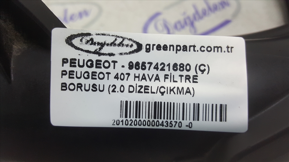 PEUGEOT 407 HAVA FİLTRE BORUSU (2.0 DİZEL/ÇIKMA)
